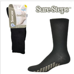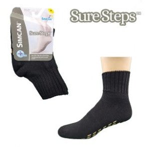 The Sure Step™ socks have been patterned off Simcan’s famous Comfort Sock but with the addition of a unique anti-slip tread on the sole to provide extra traction and security when walking on smooth or slippery surfaces. The Sure Steps are further enhanced with a perfectly flat toe seam that will never irritate the wearer’s toes. Sure Steps are the perfect sock for those looking for the ultimate in comfort and the maximum in security and safety. Available in Lo Rise or Mid Calf